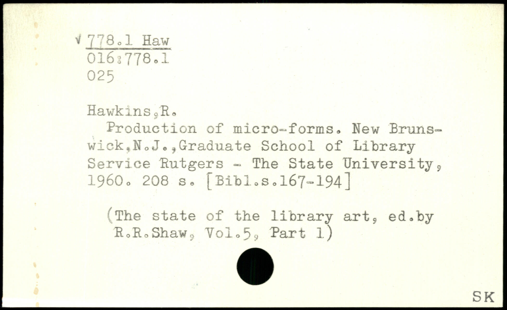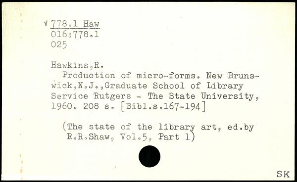 Production of micro-forms, New Brunswick,N, J. ,Graduate School of Library Service Rutgers - The State Universitys 1960