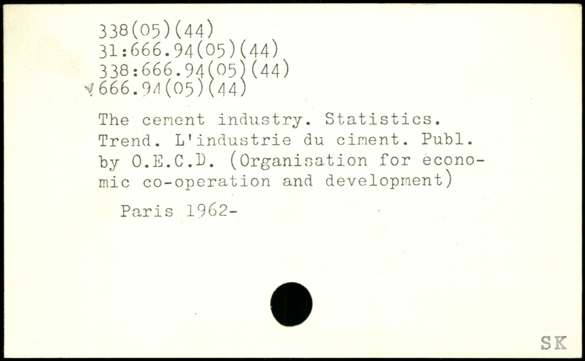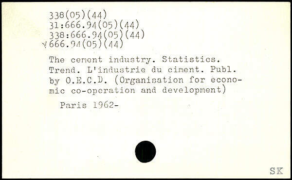 The cenent industry. Statistics. Trend. L'industrie du ciment. Puhl, by 0.E.C.1). (Organisation for economic co-operation and development) Paris 19Ö2-