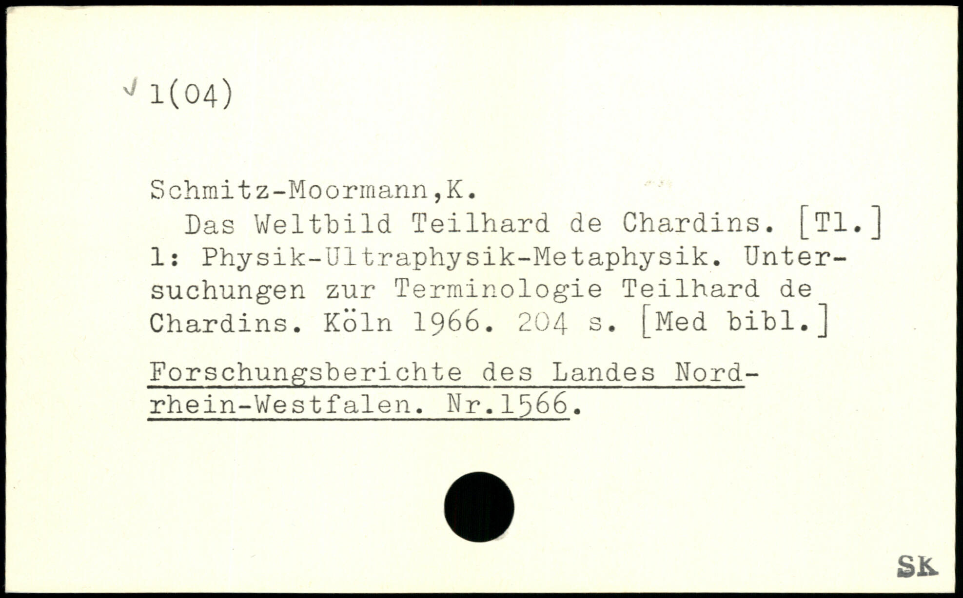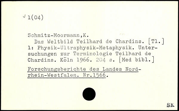 Das Weltbild Teilhard de Chardins. [TI.] 1: Physik-Ultraphysik-Metaphysik. Untersuchungen zur Terminologie Teilhard de Chardins.