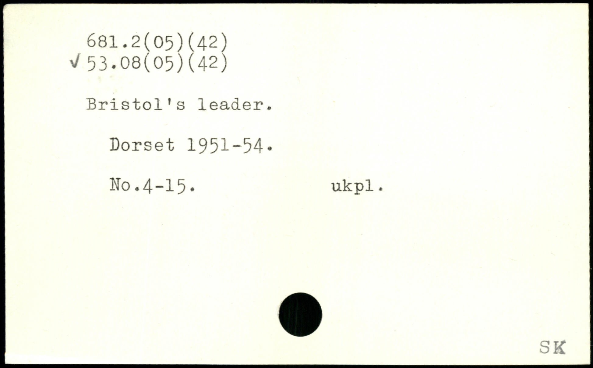 Bristol’s leader. Dorset 1951-54, Wo.4-15, ukpl.