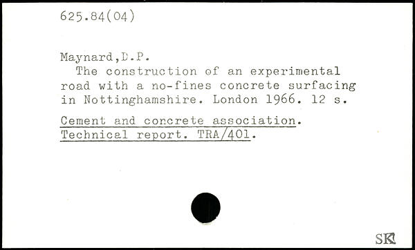 The construction of an experimental road with a no-fines concrete surfacing in Nottinghamshire.