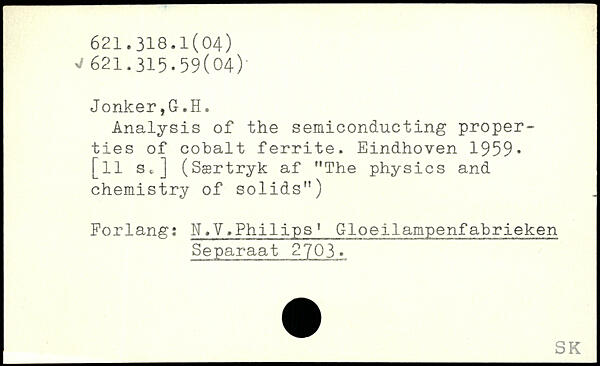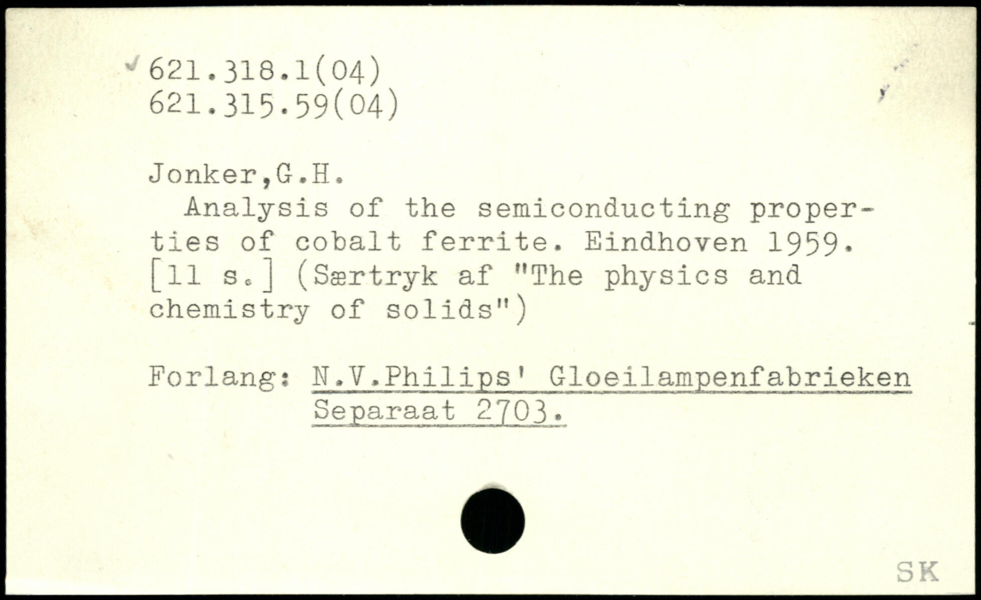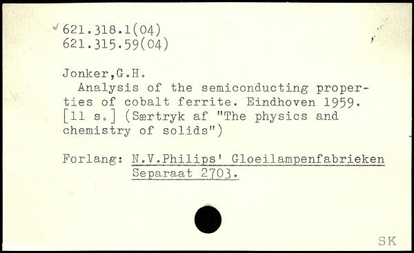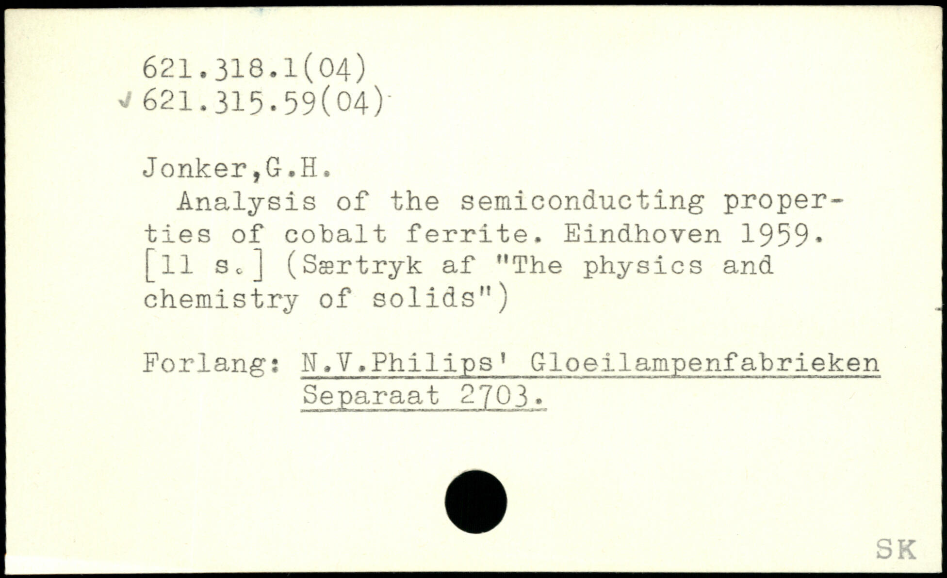 Analysis of the semiconducting properties of cobalt ferrite. Eindhoven 1959.