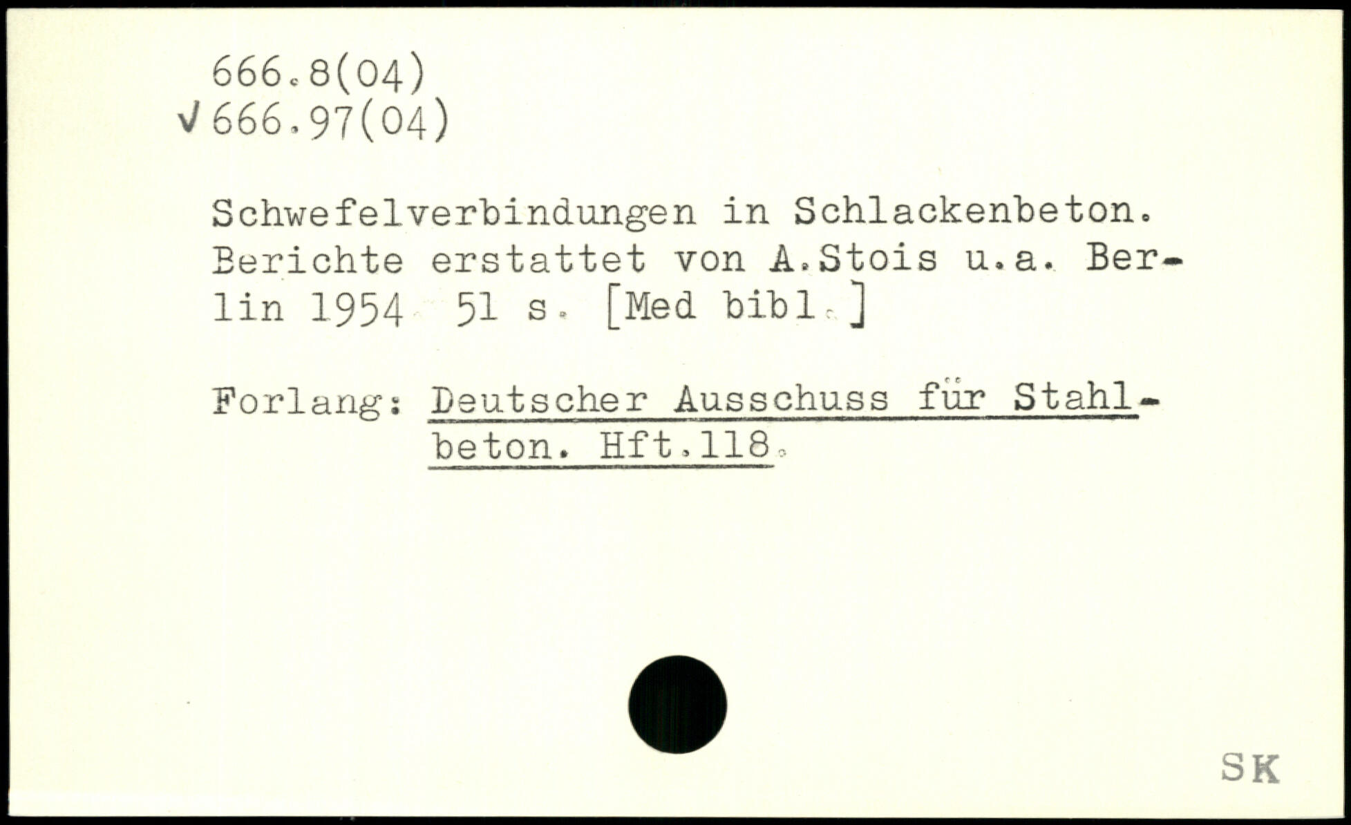 SchwefelVerbindungen in Schlackenbeton. Berichte erstattet von A.Stois u.a.