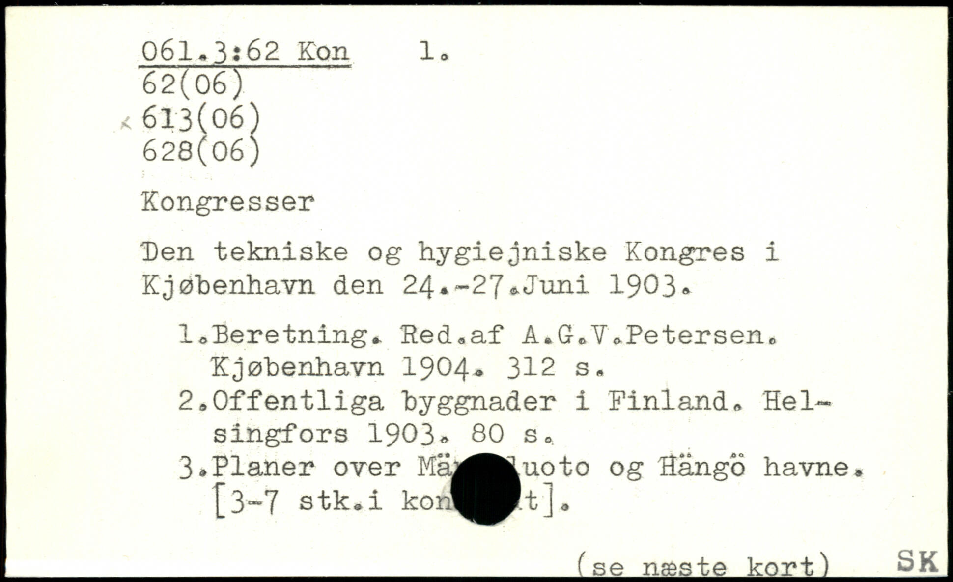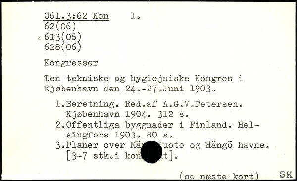 Den tekniske og hygiejniske Kongres i Kjøbenhavn den 24,-27,Juni 1903, le Beretning, Ked ,af A. G ,V, Peters en,, Kjøbenhavn 1904