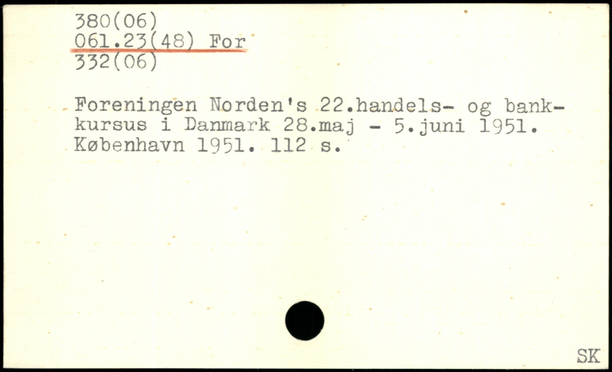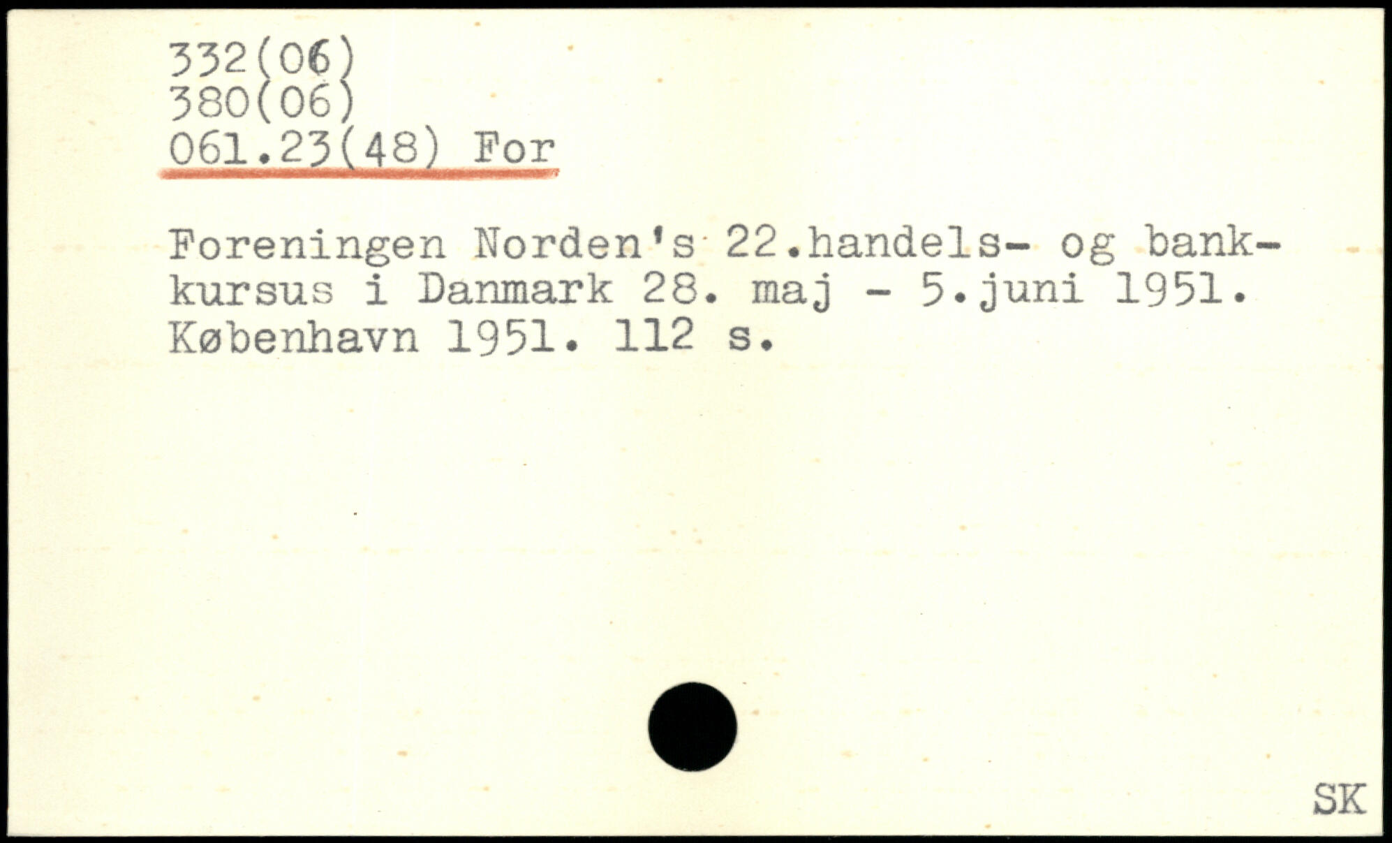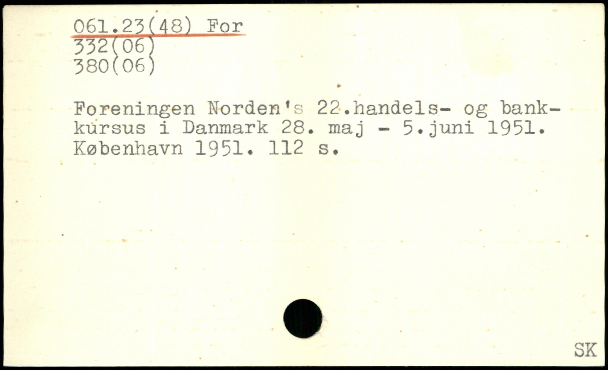 -Foreningen Norden’s 22.handels- og bankkursus i Danmark 28.maj - 5.juni 1951.