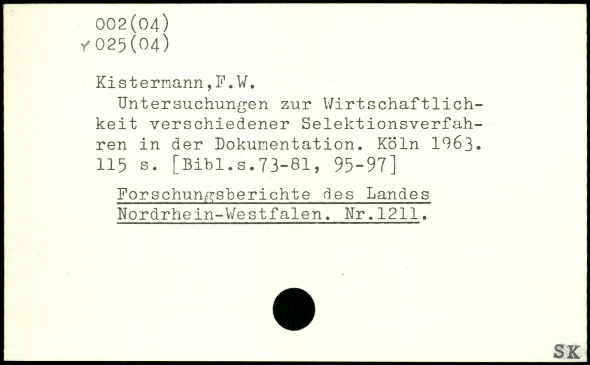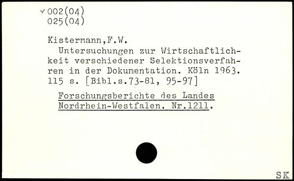 Ki s t ermann,F.V. Untersuchungen zur Wirtschaftlichkeit verschiedener Selektionsverfahren in der Dokumentation.