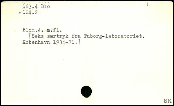 Blom,J. m.fl. f Seks særtryk fra Tuborg-laboratoriet.