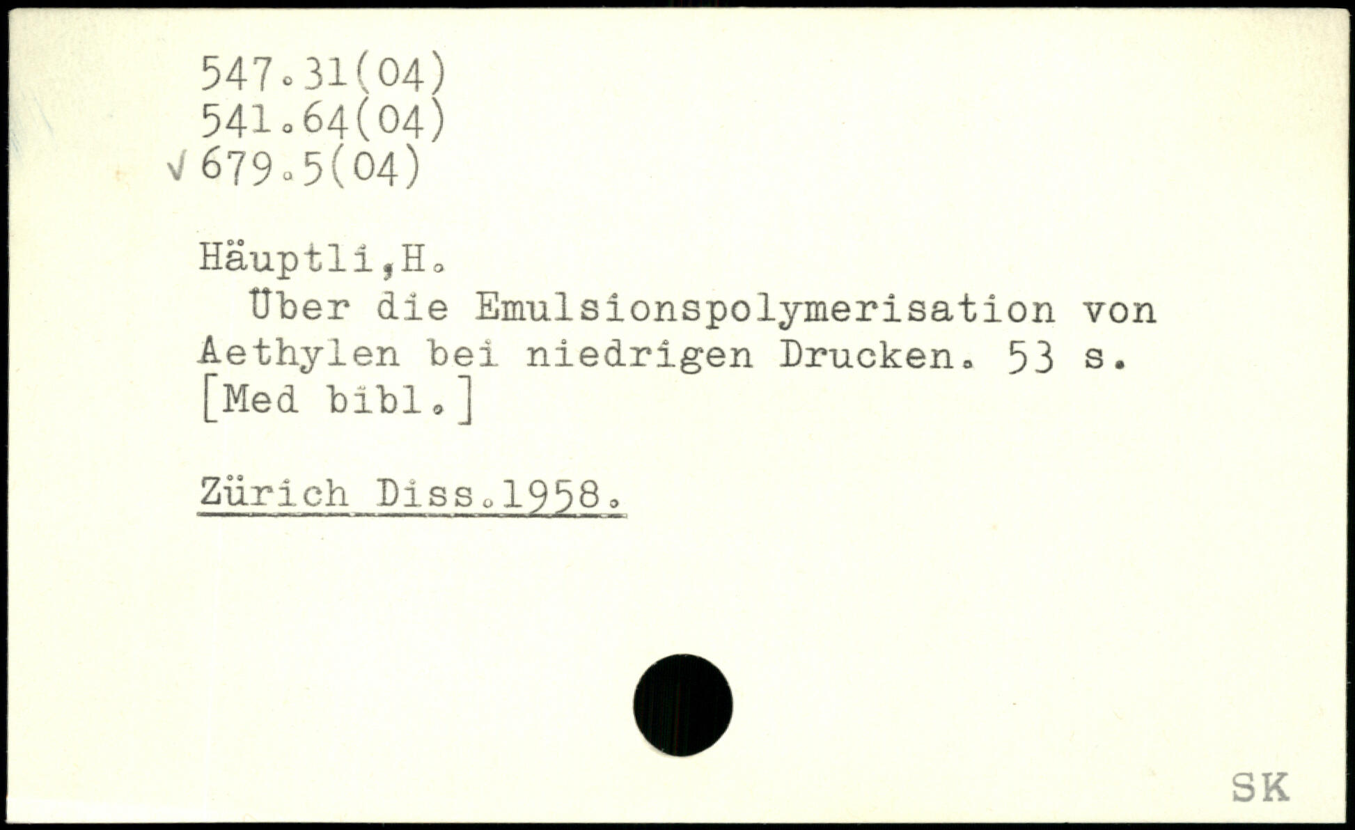 Uber die Emulsionspolymerisation von Aethylen bei niedrigen Drucken