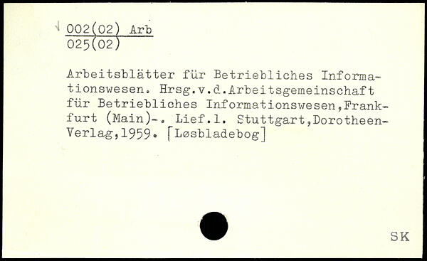 Arbeitsblätter für Betriebliches Informationswesen. Hrsg^v.d.Arbeitsgemeinschaft für Betriebliches Informationswesen,Frankfurt (Main)-. Lief.l.