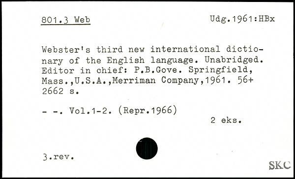 Webster’s third new international dictionary of the English language. Unabridged. Editor in chief: P.B.Gove.