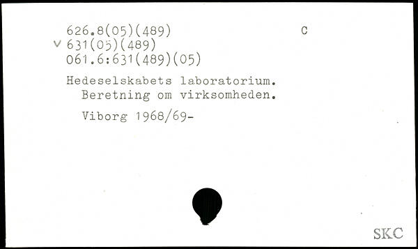 Hedeselskabets laboratorium. Beretning om virksomheden. Viborg 1968/69-