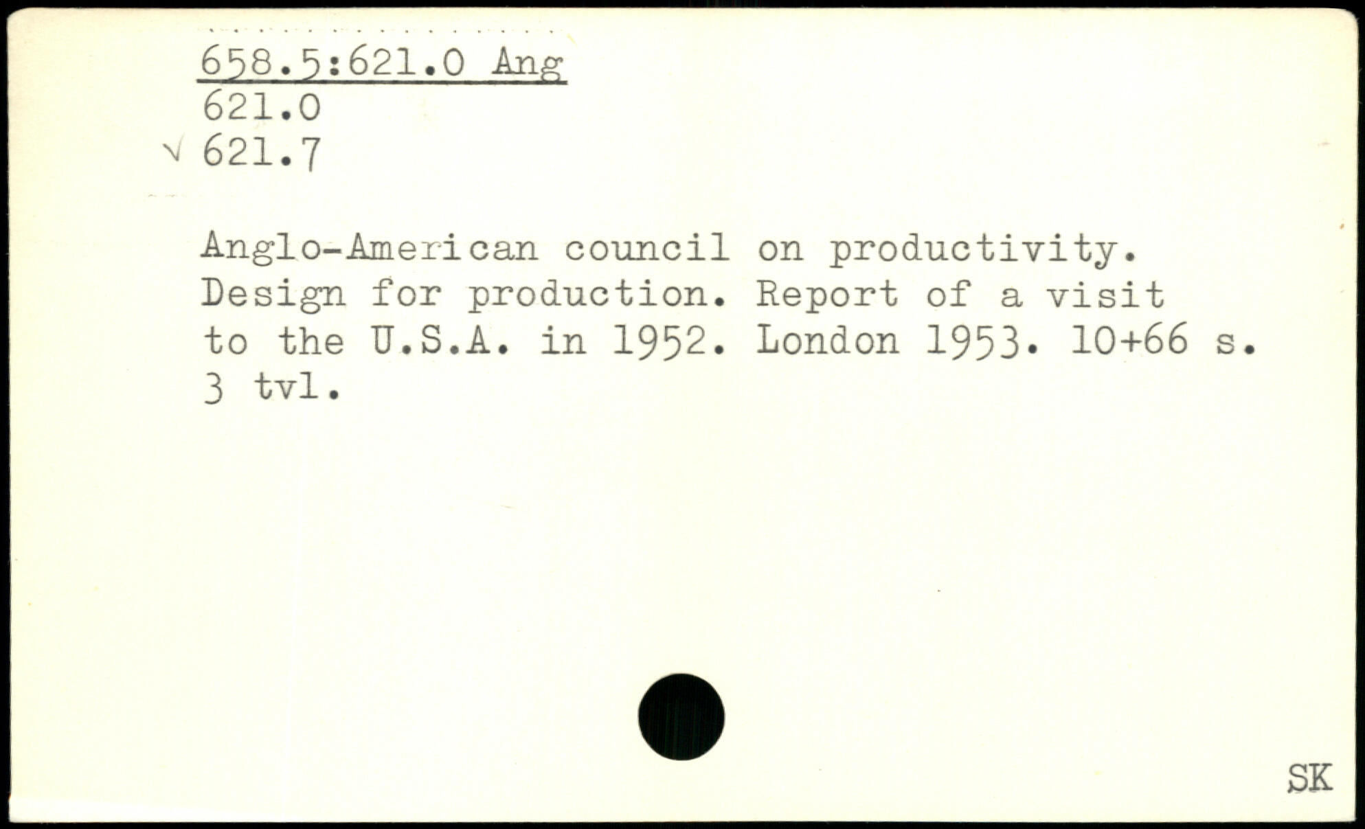 Anglo-American council on productivity. Design for production. Report of a visit to the U.S.A. in 1952