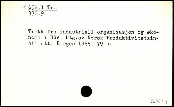 Trekk fra industriell organisasjon og økonomi i USA Utg.av Norsk Produktivitetsinstitutt