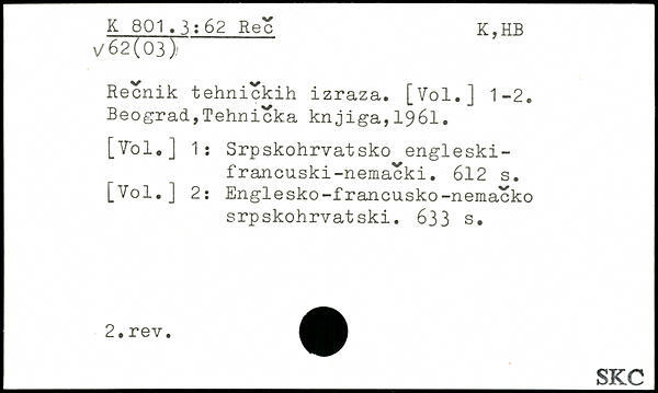 Recnik tehnickih izraza. [Vol.] 1-2.