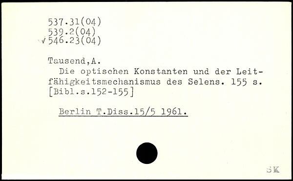 Die optischen Konstanten und der Leit-fähigkeitsmechanismus des Selens.
