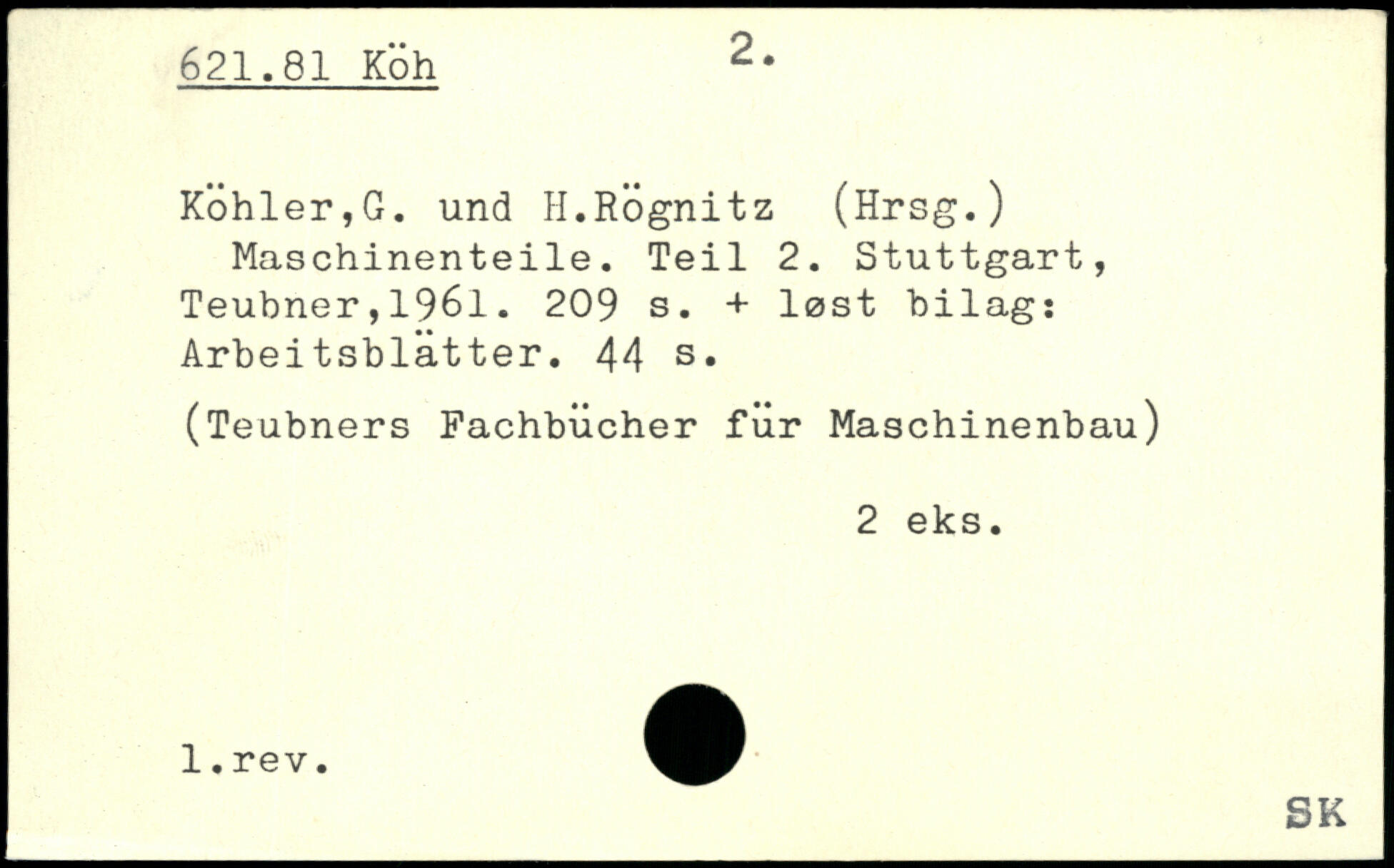 Köhler,G. und H.RÖgnitz (Hrsg.) Maschinenteile. Teil 2.