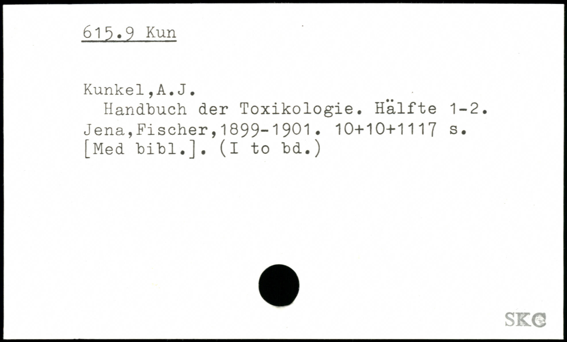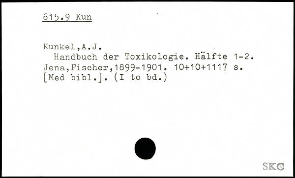 Handbuch der Toxikologie. Hälfte 1-2.
