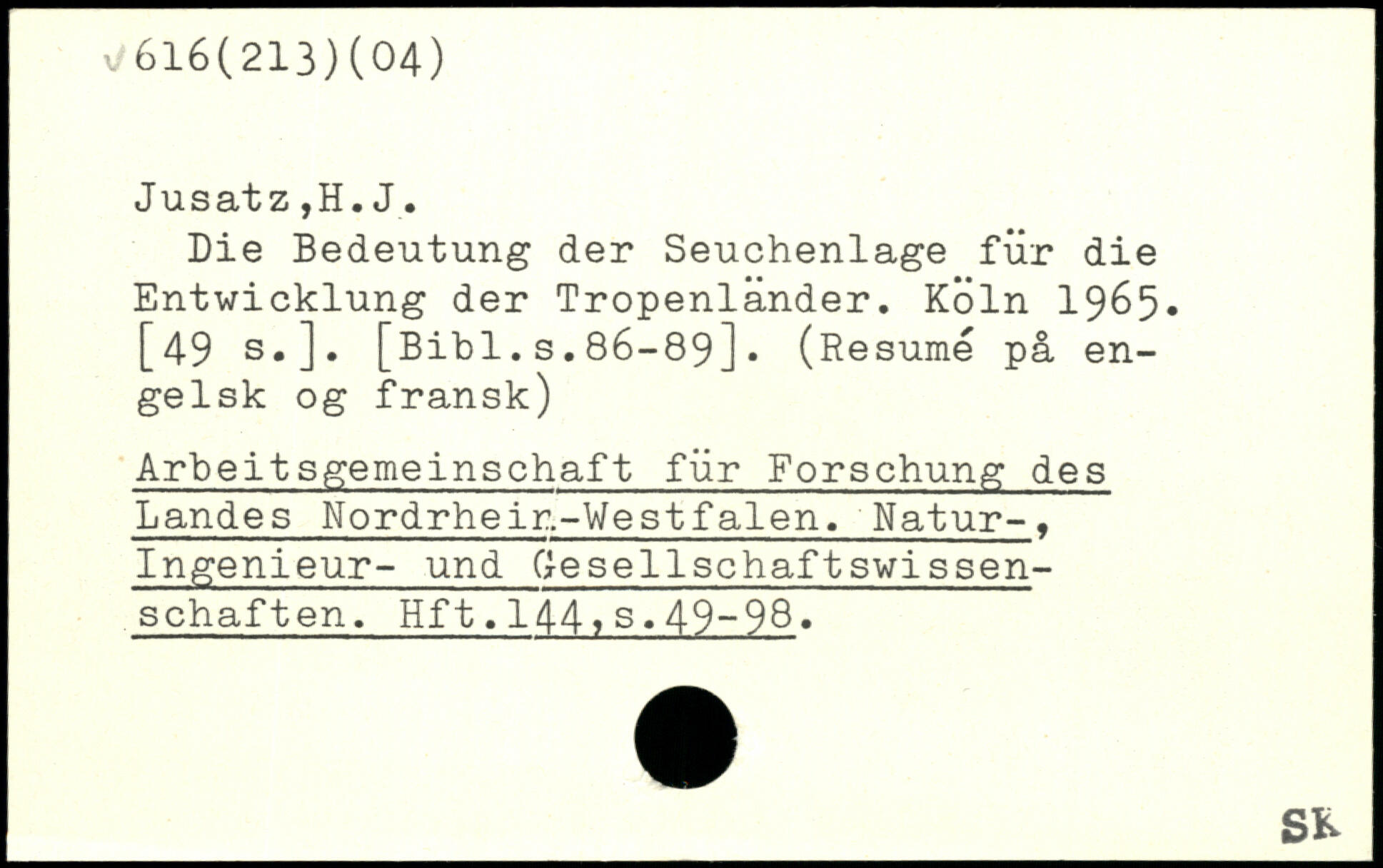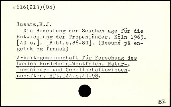 Die Bedeutung der Seuchenlage für die Entwicklung der Tropenländer.