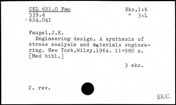Engineering design. A synthesis of stress analysis and materials engineering.