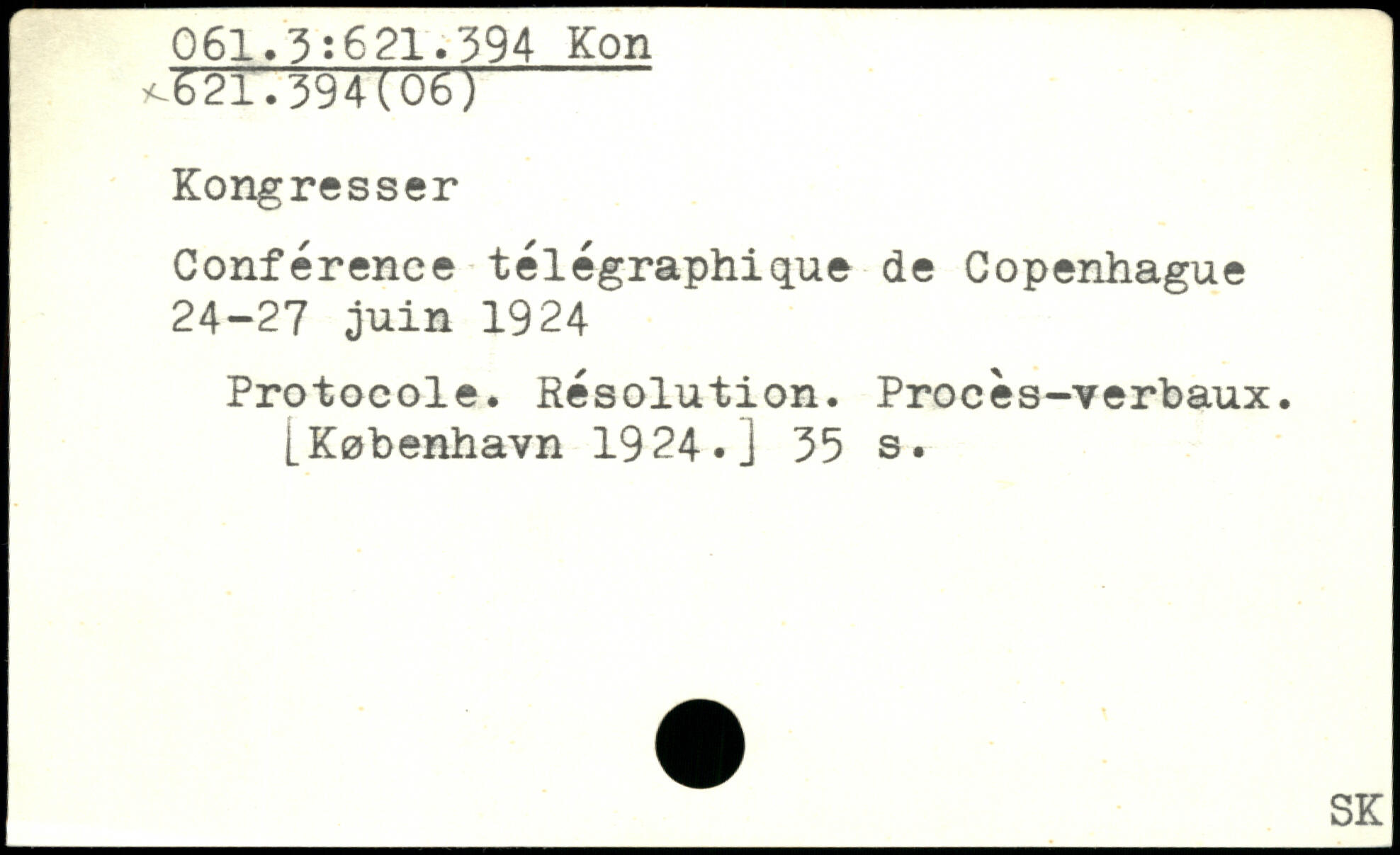 Conférence télégraphique de Copenhague 24-27 juin 1924 Protocole. Résolution. Procès-verbaux.
