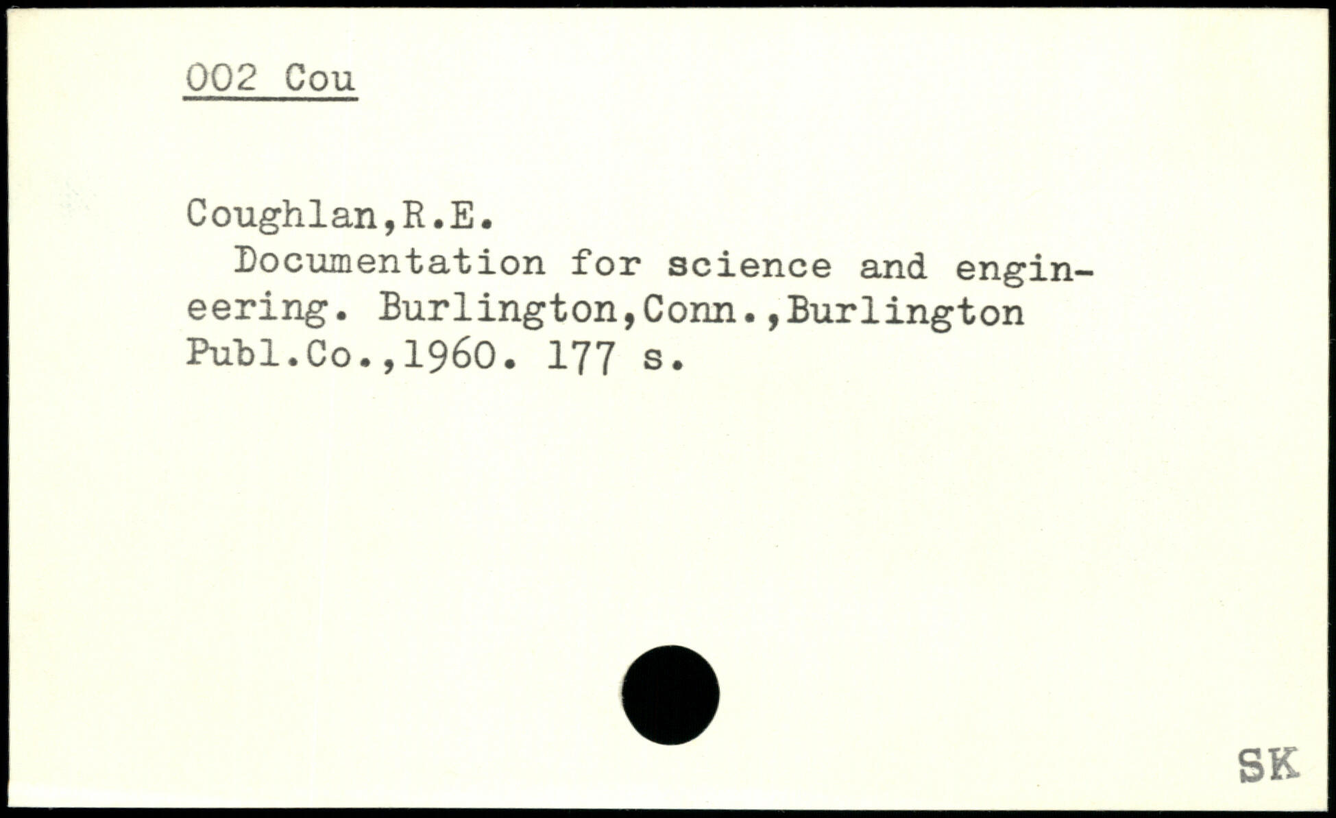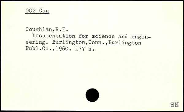 Documentation for science and engineering. Burlington,Conn.,Burlington PuB1.Co.,1960. I