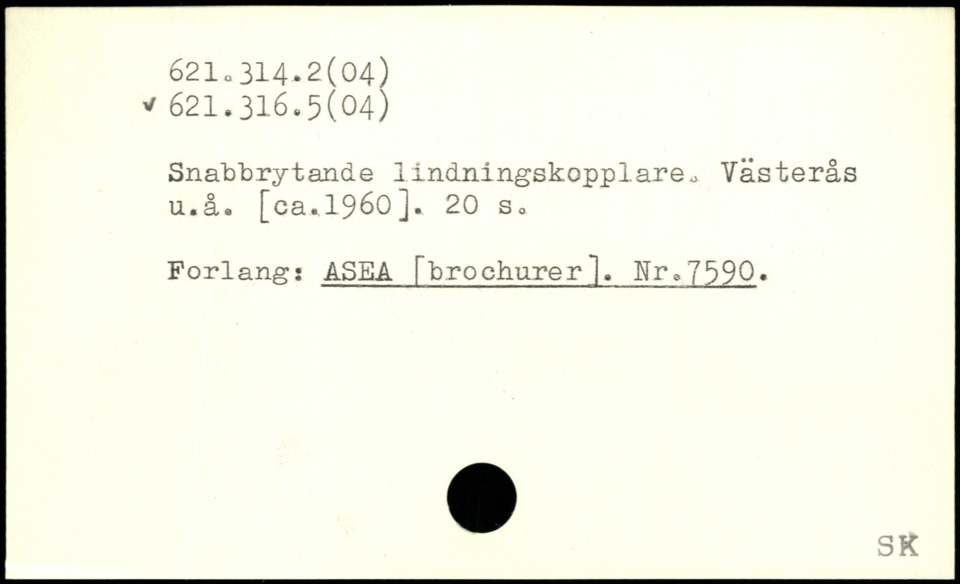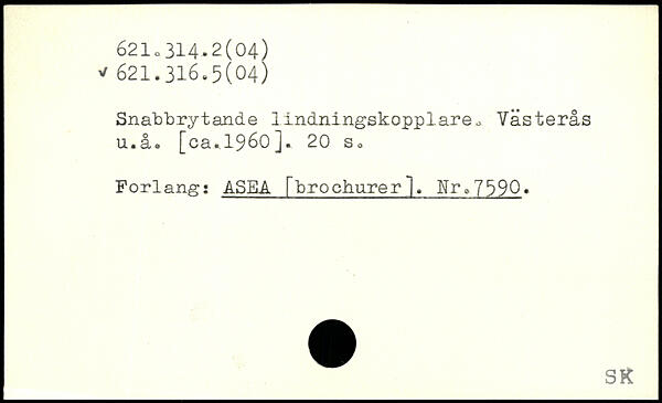 Snabbrytande lindningskopplare. Västerås u.å. [ca.1960].