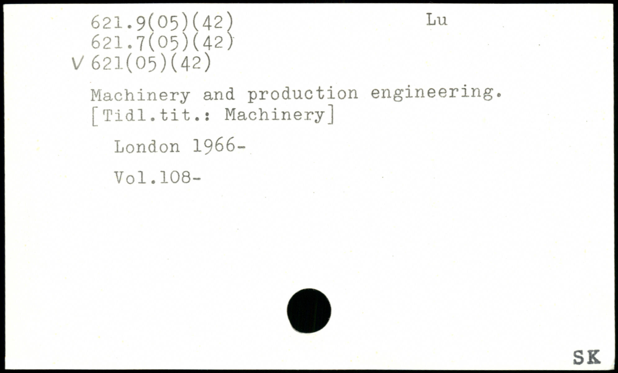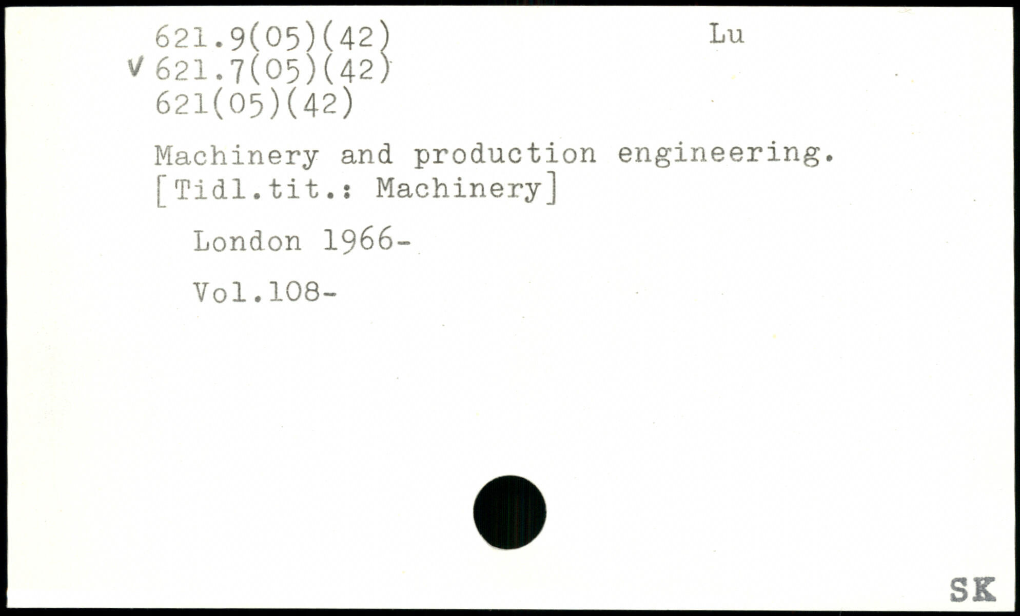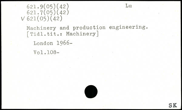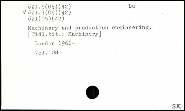 Machinery and production engineering. [Tidl.tit.: Machinery]