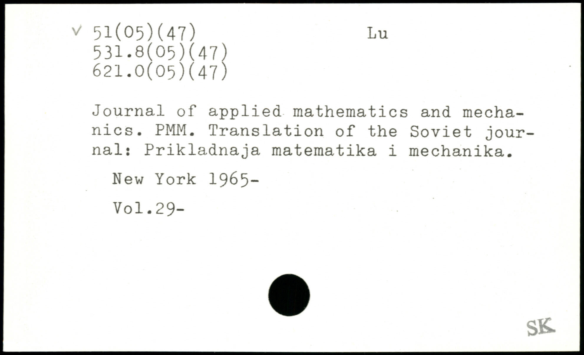 Journal of applied mathematics and mechanics. PMM. Translation of the Soviet journal: Prikladnaja matematika i mechanika.