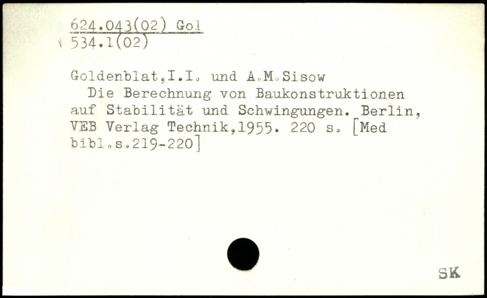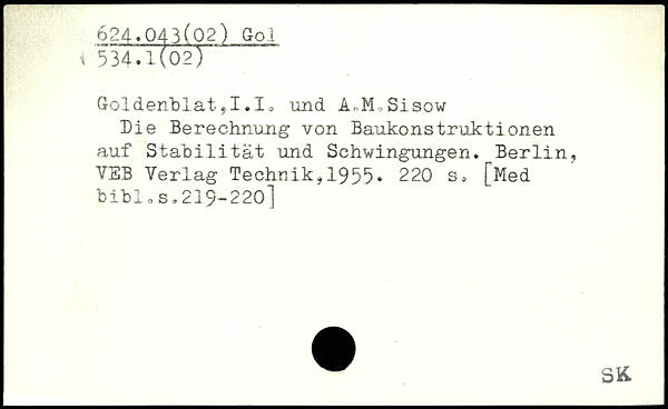 Goldenblat ?I.Io und A,-M .Sisow Die Berechnung von Baukonstruktionen auf Stabilität und Schwingungen.