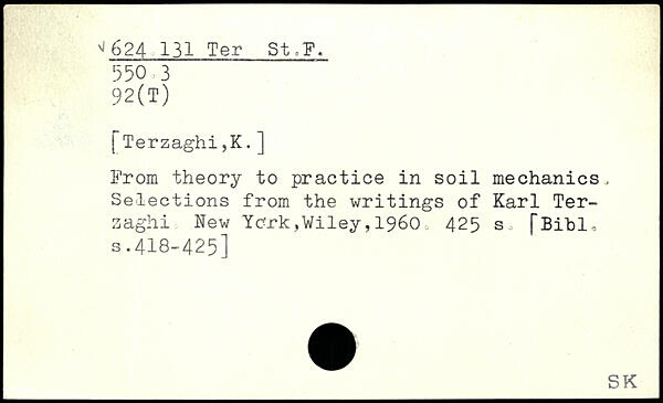 ( Terzaghi,K.] From theory to practice in soil mechanics, Selections from the writings of