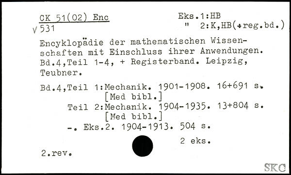 Encyklopädie der mathematischen Wissenschaften mit Einschluss ihrer Anwendungen.