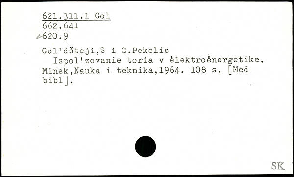 Gol'dsteji>S i G.Pekelis Ispol'zovanie torfa v êlektroênergetike.
