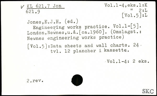 Engineering works practice. Vol.l-[5J, London,Newnes,u.å.[ca.1960].