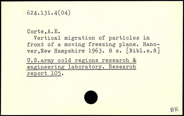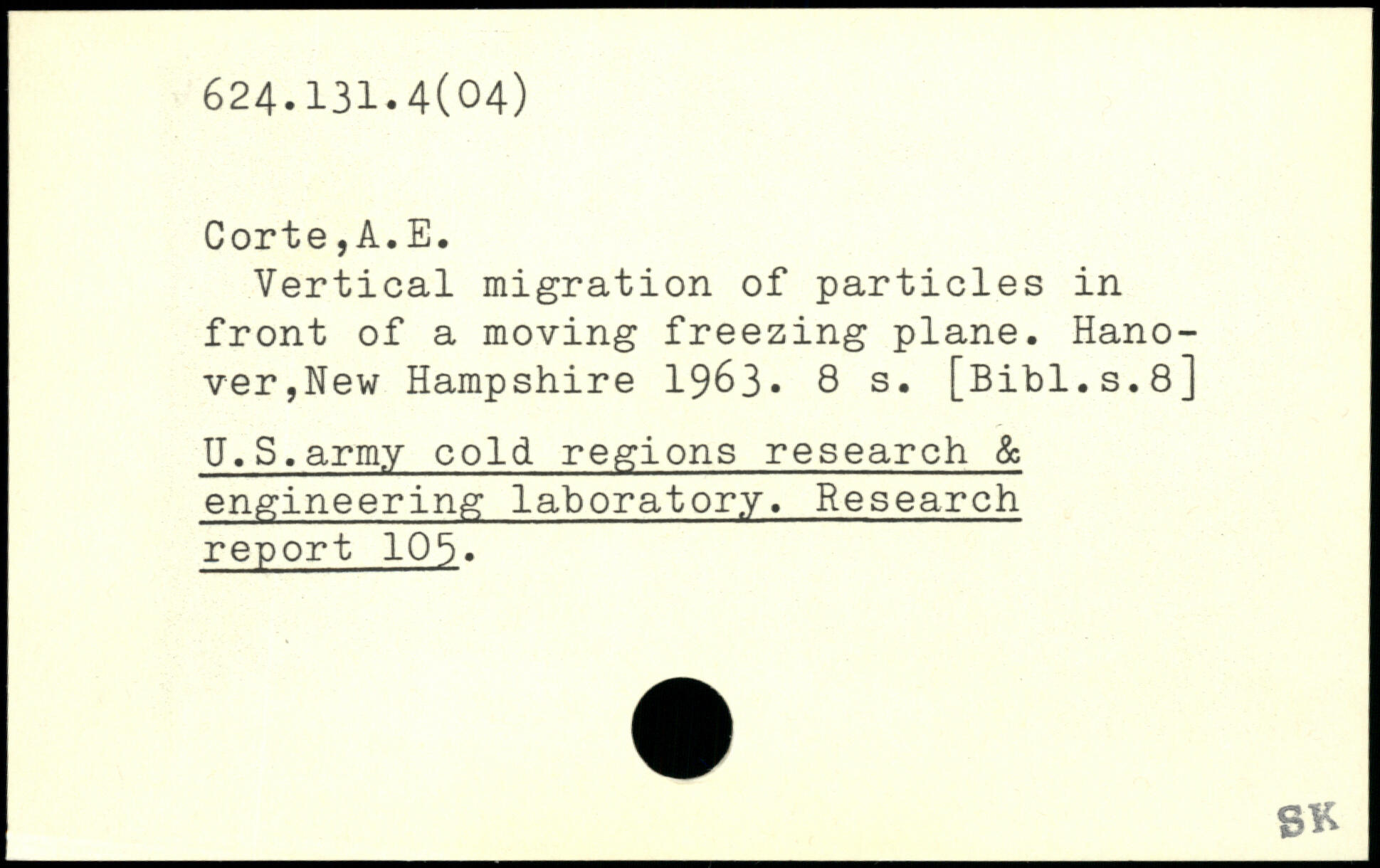 Vertical migration of particles in front of a moving freezing plane. Hanover,New Hampshire 1963.