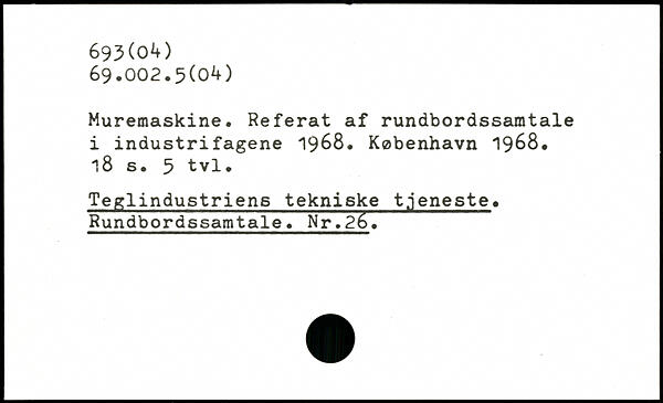Muremaskine. Referat af rundbordssamtale i industrifagene 1968.