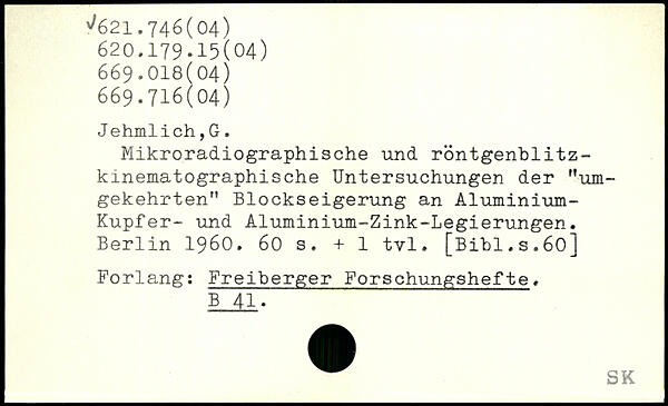 Mikroradiographische und röntgenblitz-kinematographische Untersuchungen der "umgekehrten" Blockseigerung an Aluminium-j Kupfer- und Aluminium-Zink-Legierungen.