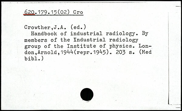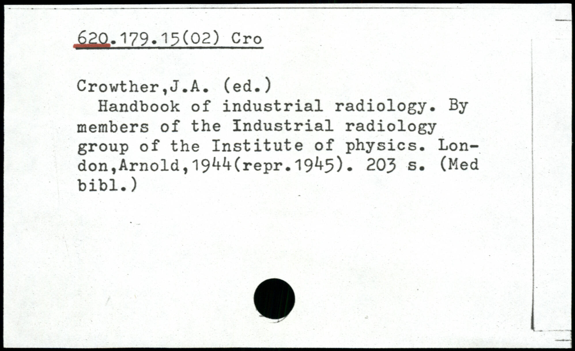 Handbook of industrial radiology. By members of the Industrial radiology group of the Institute of physics. London ,Arnold , 19^^(repr. 19^5).