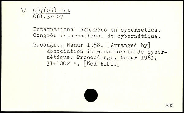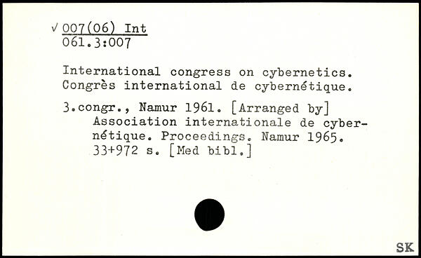 International congress on cybernetics. Congrès international de cybernétique. 2.congr., Namur 1958. [Arranged by] Association internationale de cybernétique. Proceedings. Namur 1960.