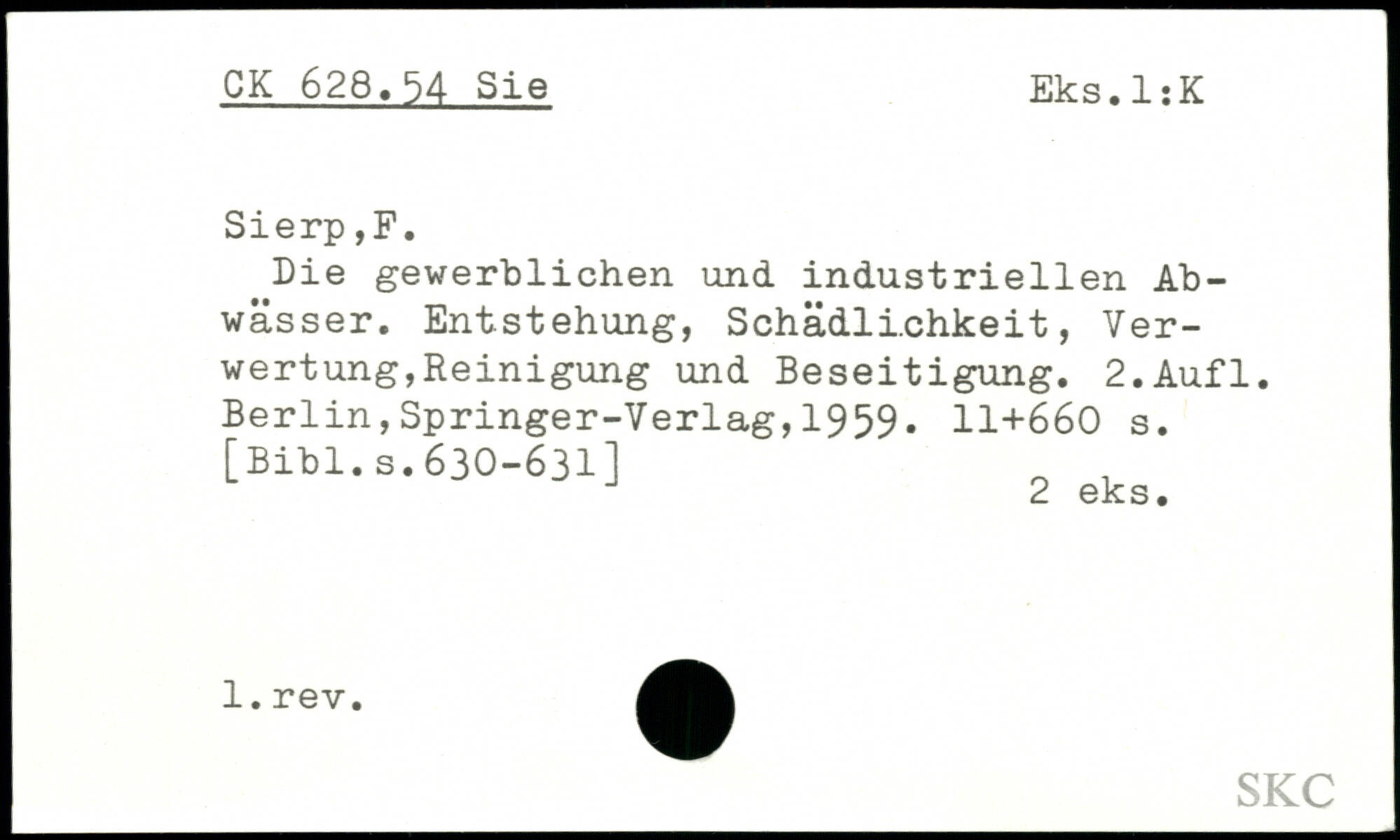 Die gewerblichen und industriellen Abwässer. Entstehung, Schädlichkeit, Verwertung,Reinigung und Beseitigung.
