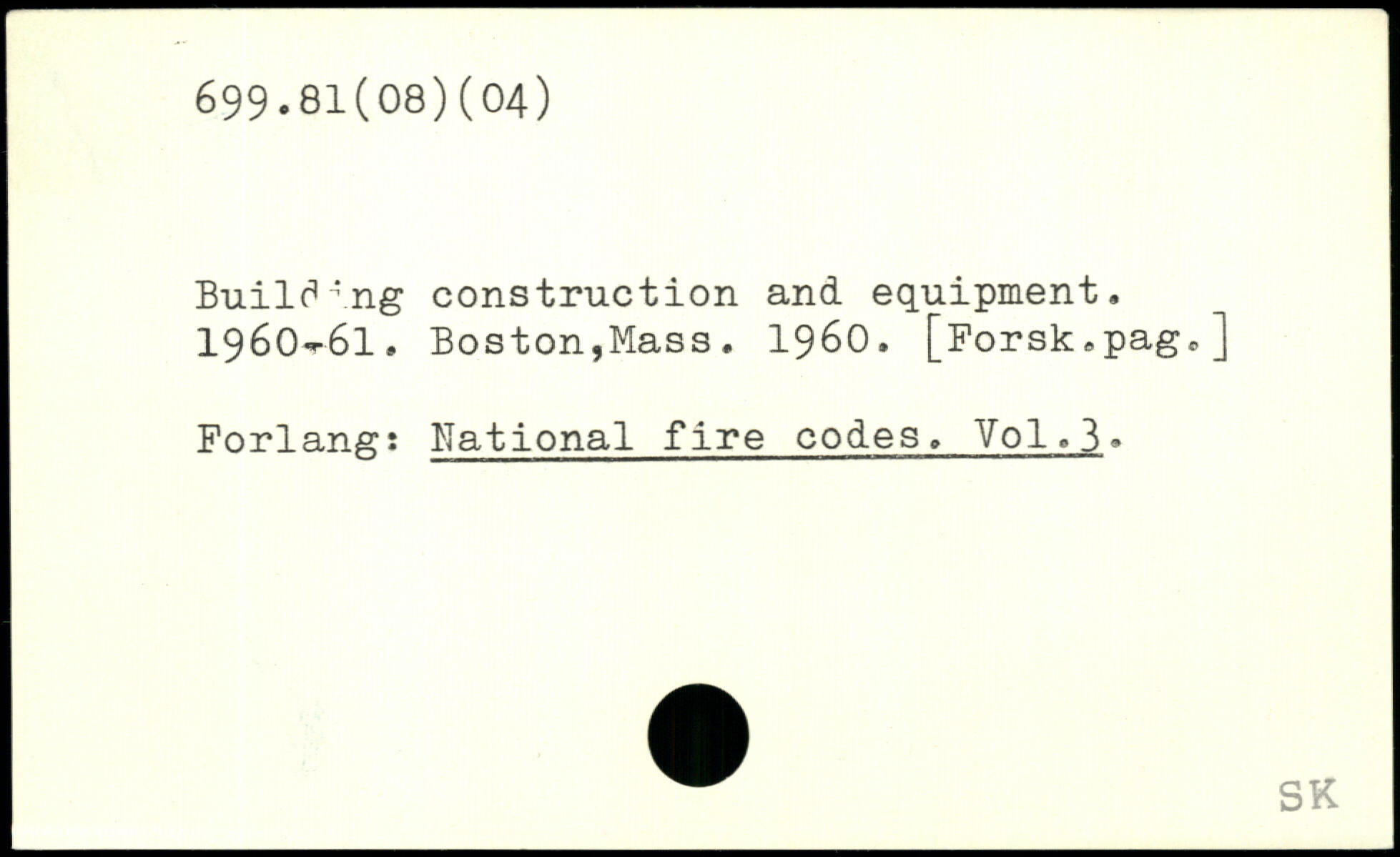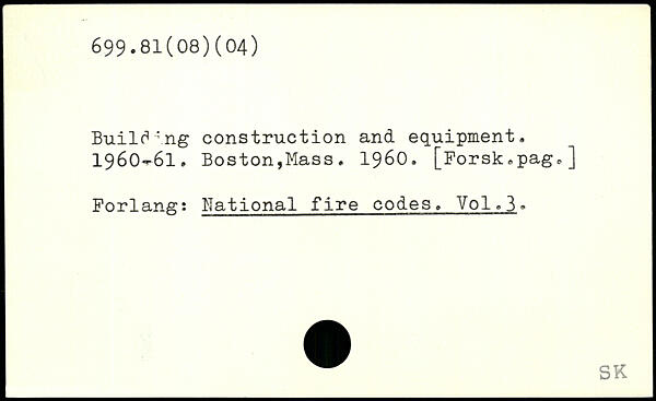 Building construction and equipment. 1960-61, Boston,Mass. 1960.