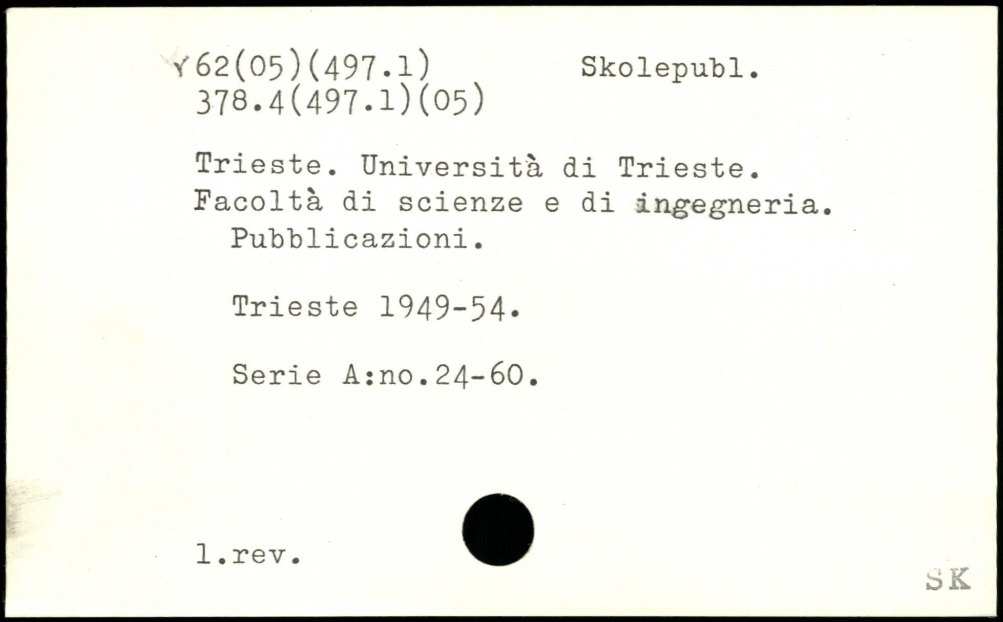 Trieste. ïïniversità di Trieste. Facoltà di scienze e di ingegneria. Pubblicazioni. Trieste 1949-54, Serie Aino.24-60.