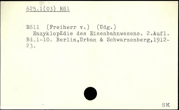Roll (Freiherr v.) (Udg.) Enzyklopädie des Eisenbahnwesens