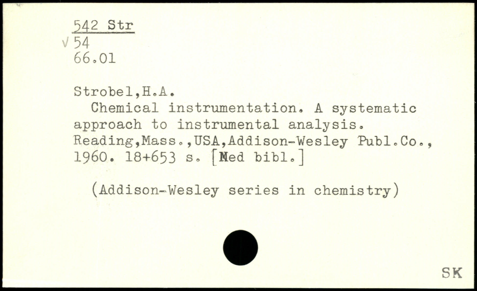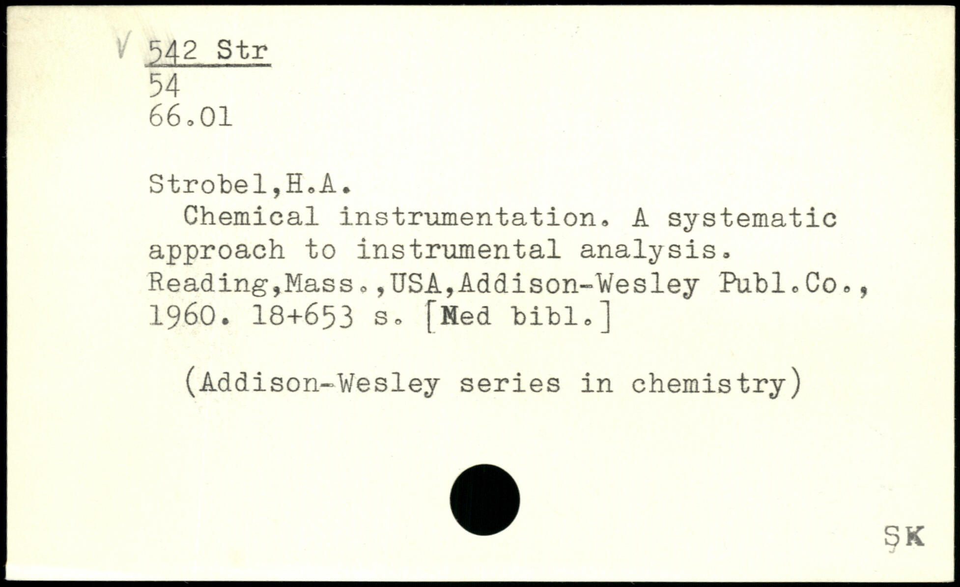 Chemical instrumentation. A systematic approach to instrumental analysis. Reading,Mass.,USA,Addison-Wesley Puhl.Co., 1960.