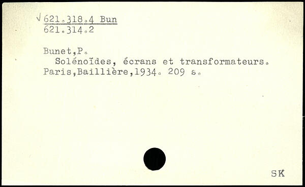 Bunet,Pa Solénoïdes, écrans et transformateurs,, Paris,Ba1111ère, 1934“ 209