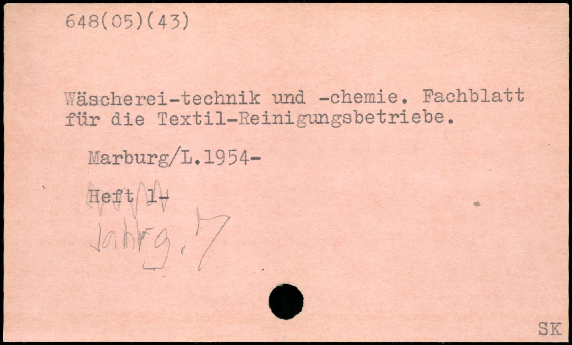 Wäscherei-technik und -Chemie, Fachblatt für die Textil-Reinigungsbetriebe. Marburg/L,1954- -Heft- jfy M faq, y
