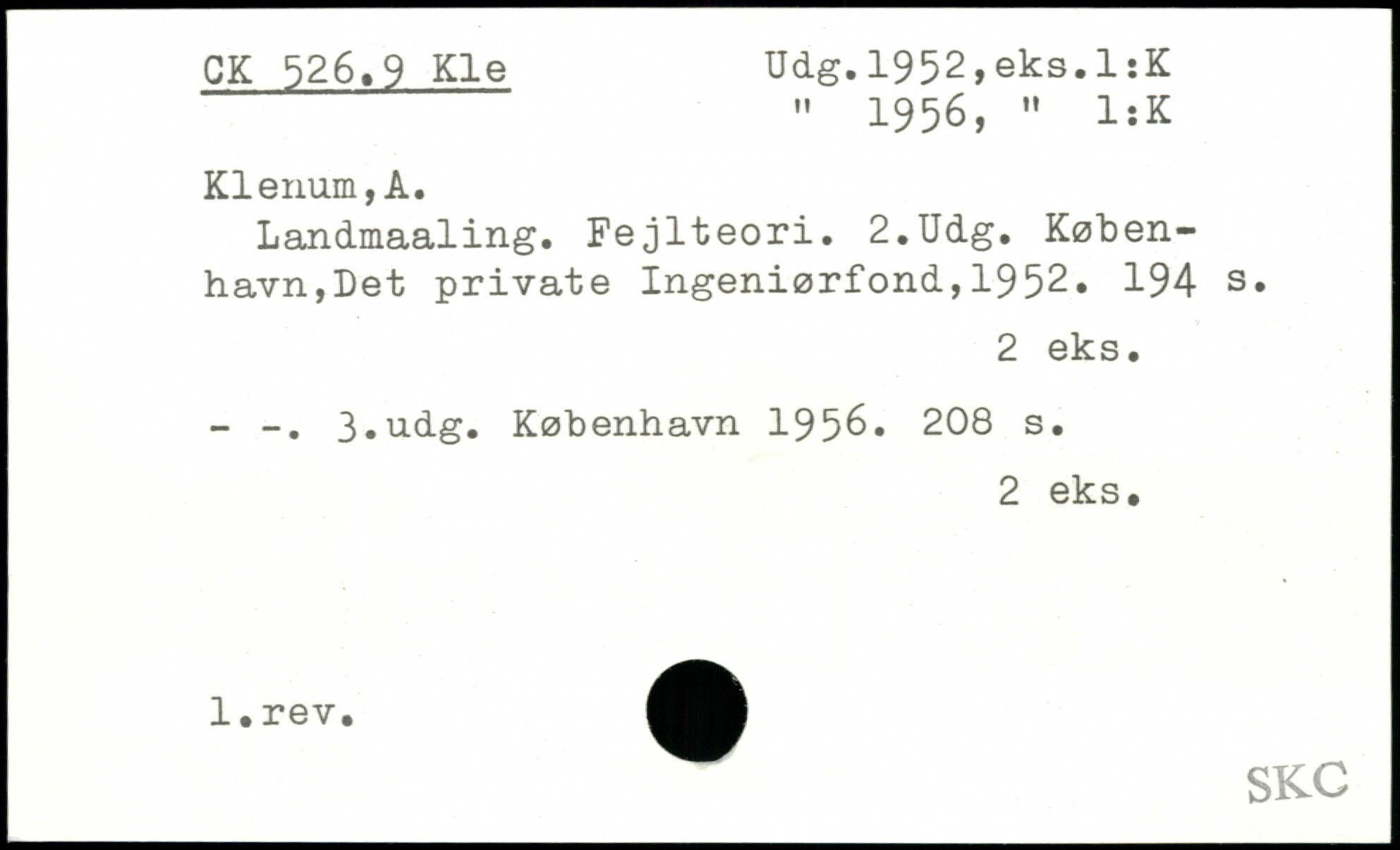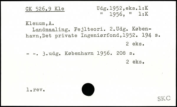 " 1956, " lïK Klenum,A. Landmaaling. Fejlteori. 2.