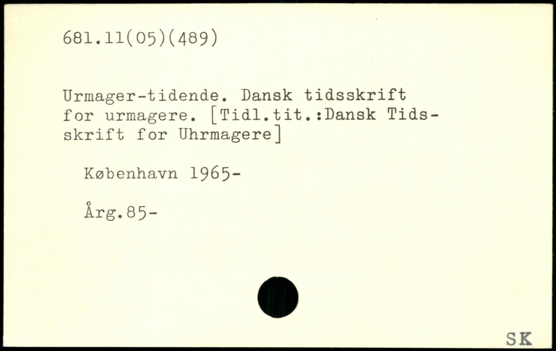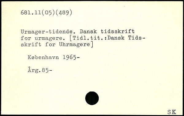 Urmager-tidende. Dansk tidsskrift for urmagere. [Tidl.tit.sDansk Tidsskrift for Uhrmagere]