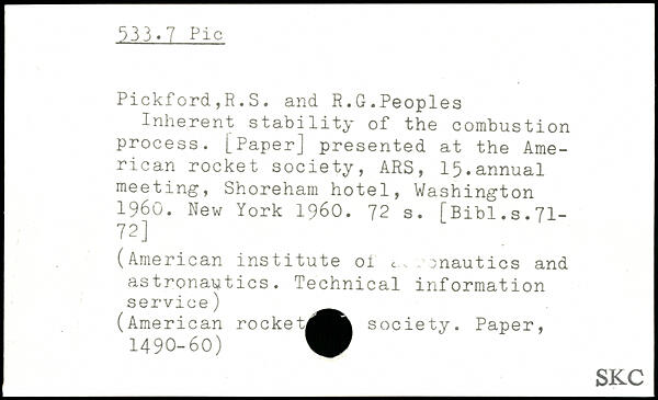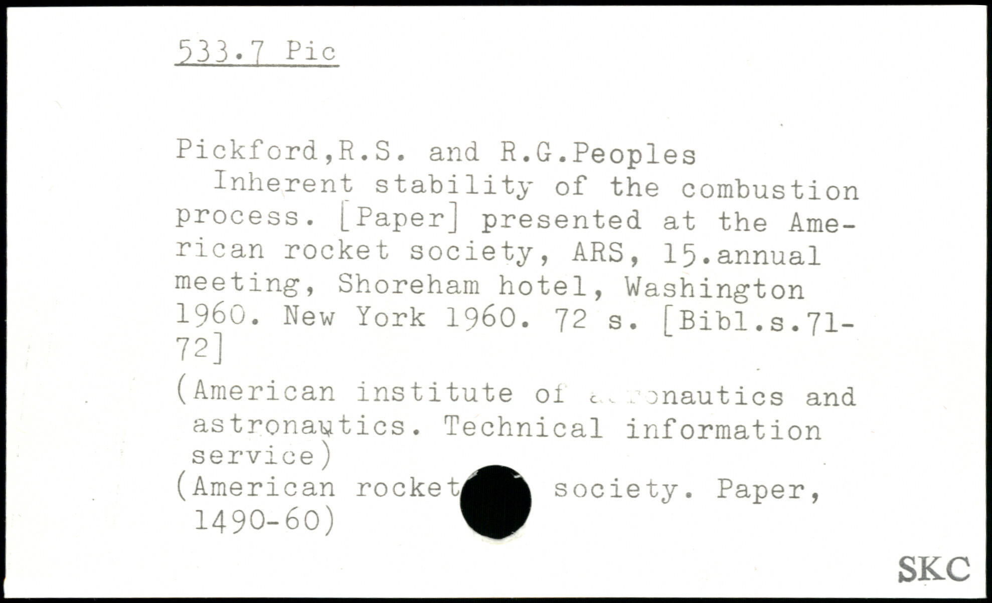 Inherent stability of the combustion process. [Paper] presented at the American rocket society, ARS, 15.annual meeting, Shoreham hotel