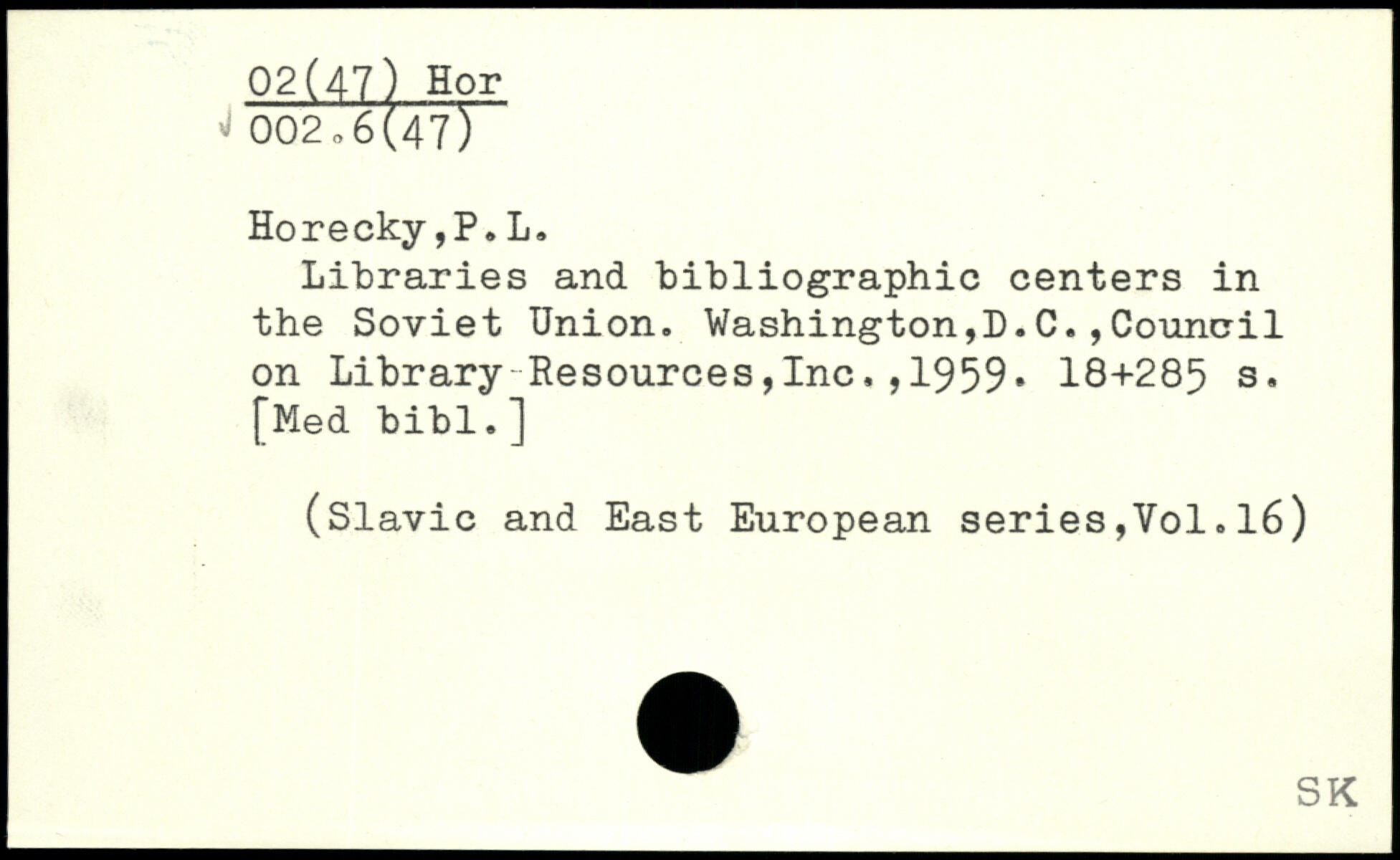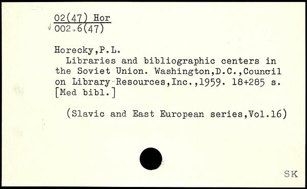 Libraries and bibliographie centers in the Soviet Union. Washington,!).C. ,Council on Library-Resources,Inc,,1959.