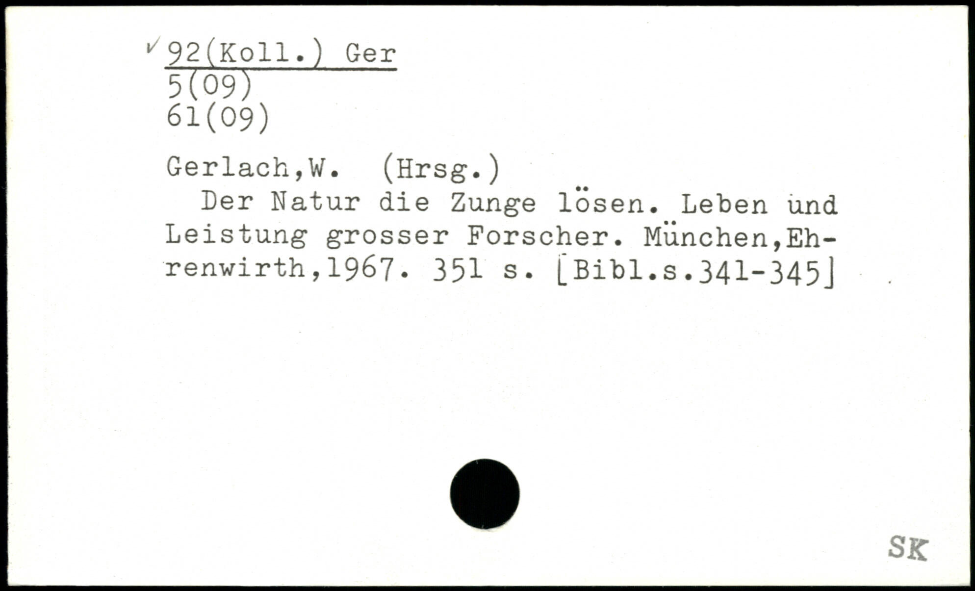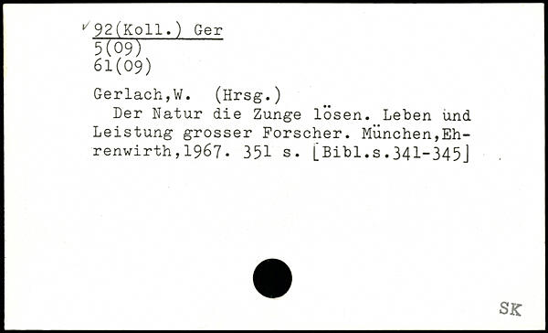 >/92(KolI.) Ger 5109l 61(09) Gerlach,W. (Hrsg.) Der Natur die Zunge lösen. Leben und Leistung grosser Forscher.